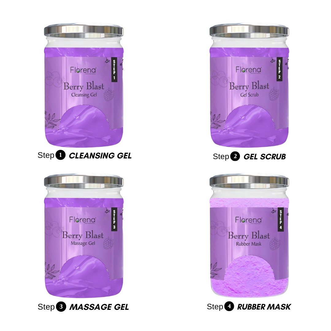 Florena Berry Blast Gel Facial Kit with Cleansing Gel 400gm, Gel Scrub 400gm, Massage Gel 400gm, Rubber Mask 400gm