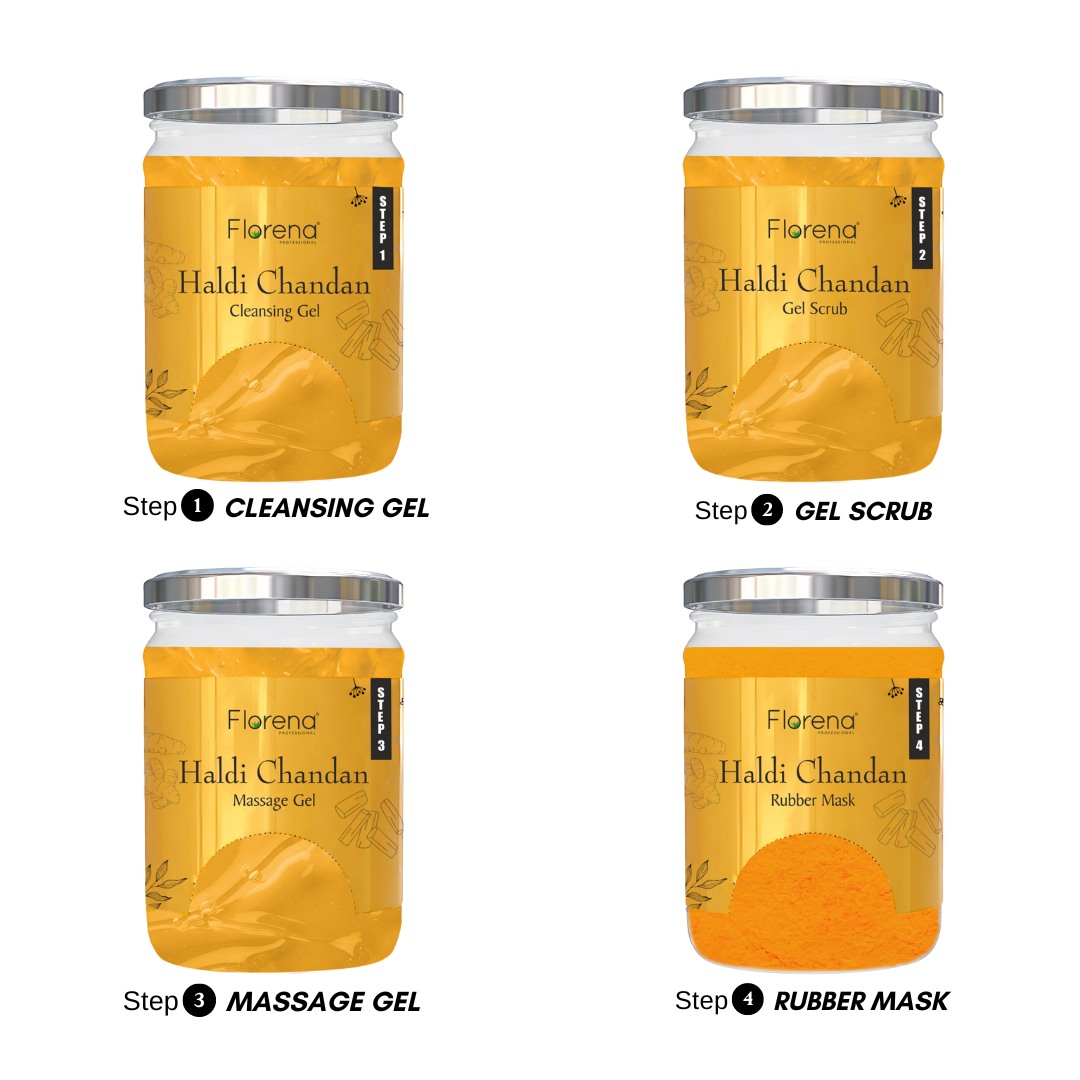Florena Haldi Chandan Gel Facial Kit with Cleansing Gel 400gm, Gel Scrub 400gm, Massage Gel 400gm, Rubber Mask 400gm