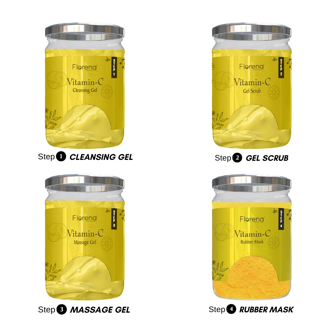 Florena Vitamin-C Gel Facial Kit with Cleansing Gel 400gm, Gel Scrub 400gm, Massage Gel 400gm, Rubber Mask 400gm